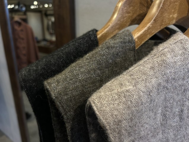 ツイードを彷彿とさせる生地からガシッとした質感をイメージしがちですが、