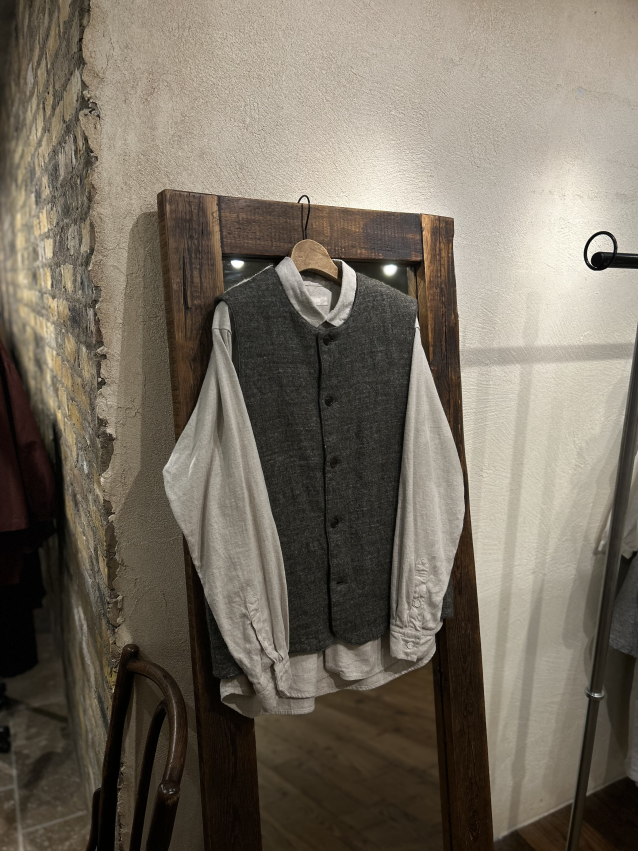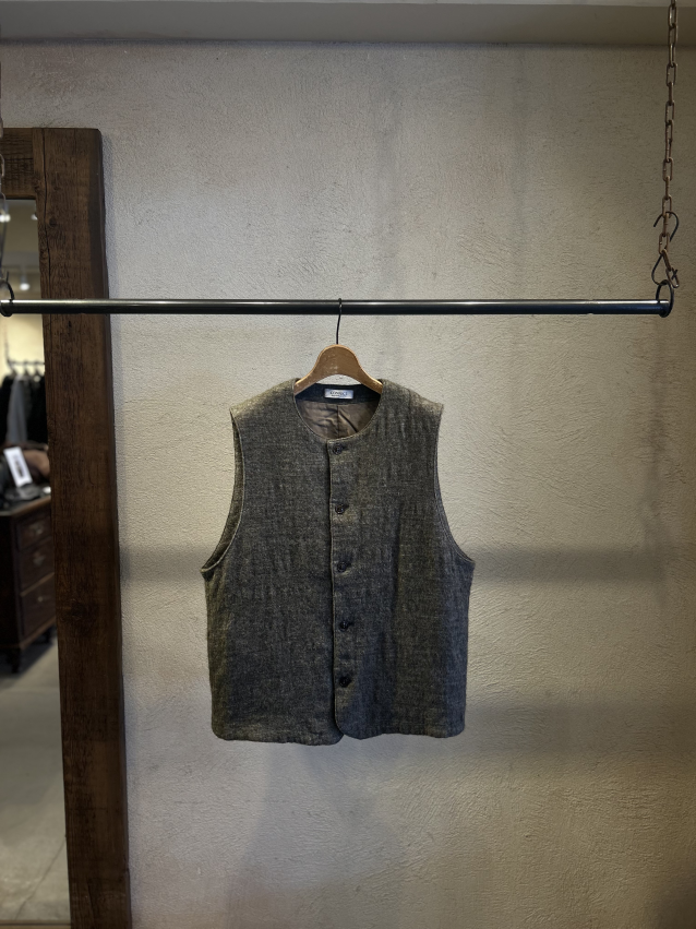 ウールリネン クルーネックベスト (OATMEAL) ¥35,200(税込) / CONFECT