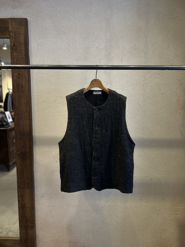 ウールリネン クルーネックベスト (BLACK) ¥35,200(税込) / CONFECT
