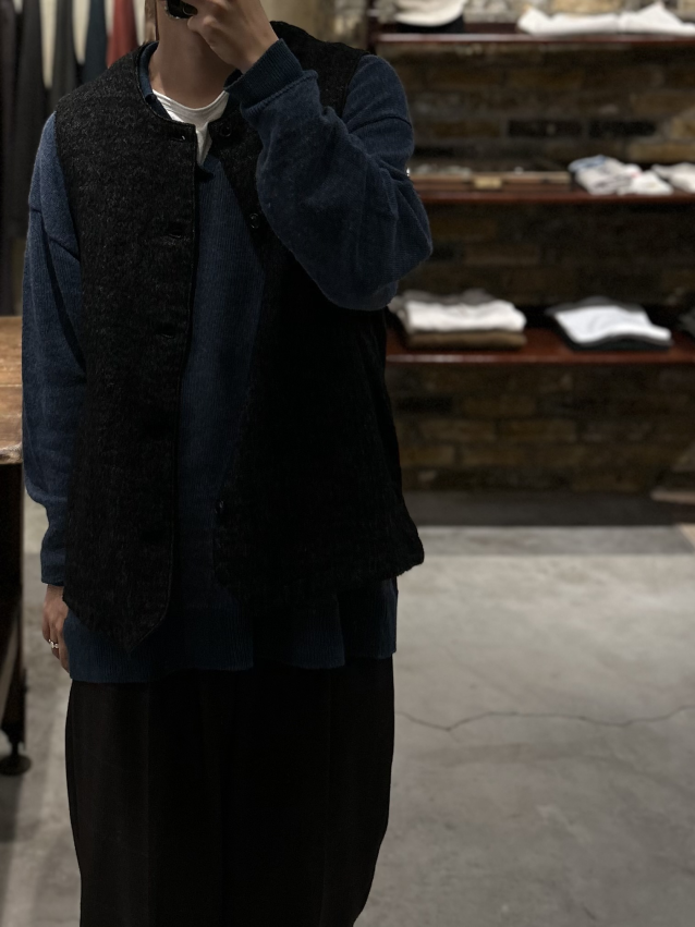 CONFECTのクルーネックベストはインナーに使った時の収まりが非常に良い。