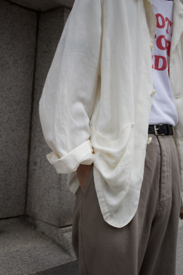 ルーズデニムの新色はスタイリングに温かみを加えてくれるように思います。