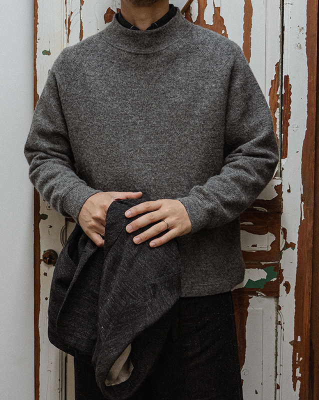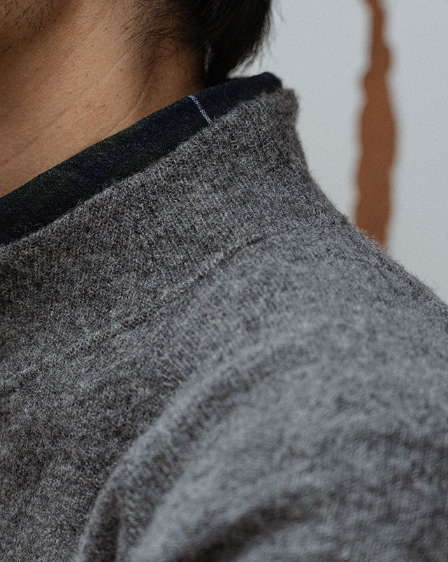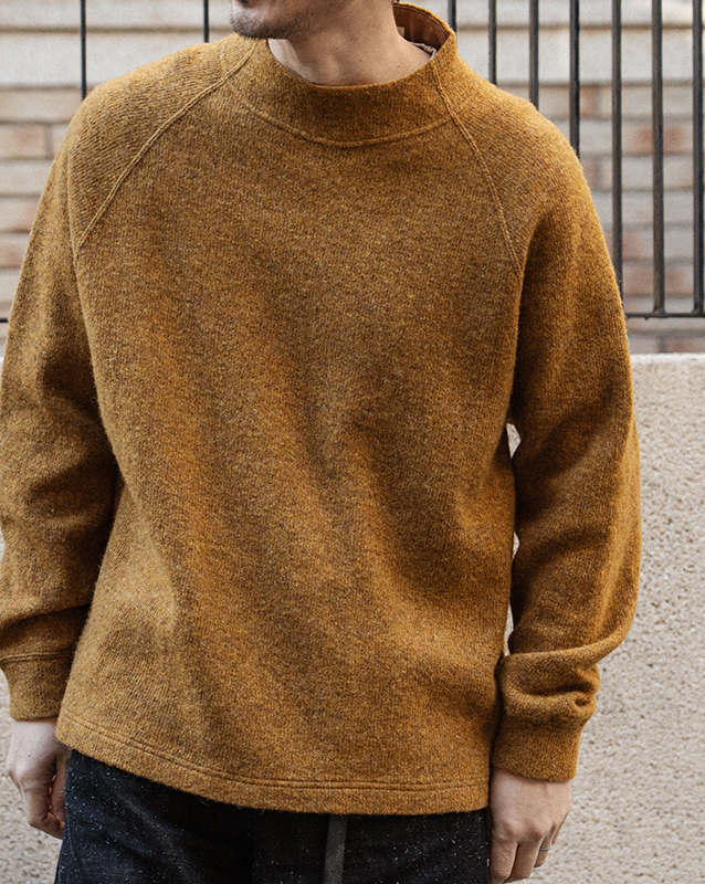 レギュラー衿のシャツとの相性も良さそうなモックネックです。