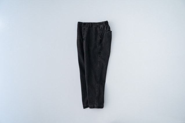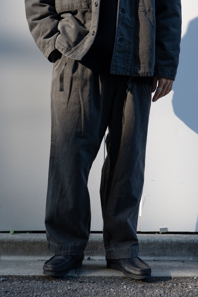 50年代初頭のU.S.ARMYチノをデザインソースにウエストにバックギャザーを持たせて着脱の容易さと腰回りには確りとゆとりを入れ、裾に向けてはテーパードラインを採用しシルエットに特徴を持たせた