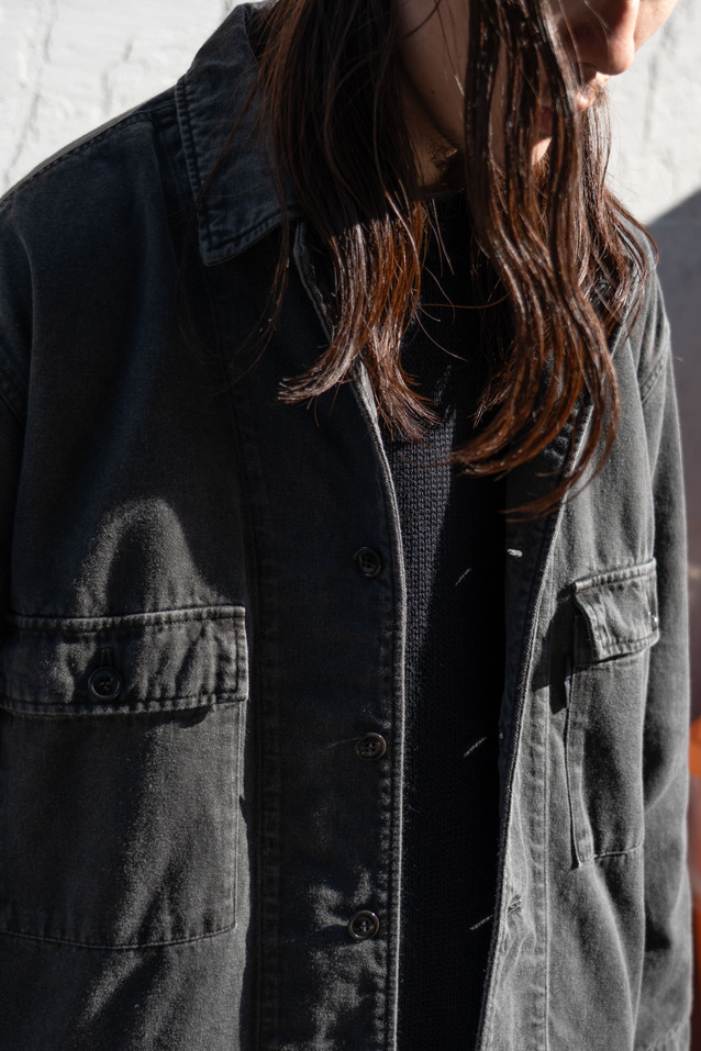 40-50年頃のU.S.ARMY M43ジャケットをデザインソースに、身巾・肩巾を出してゆったりとしたシルエットに仕上げた