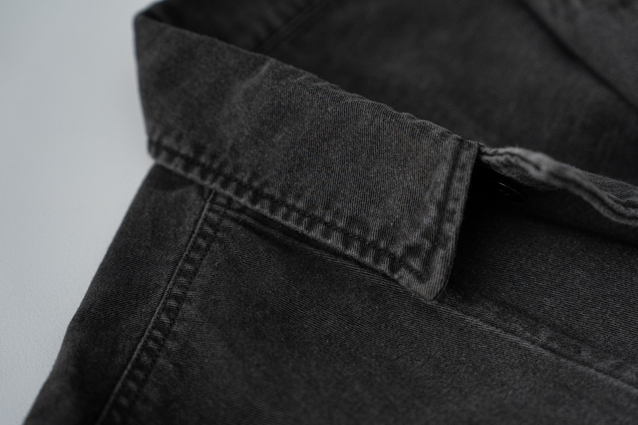 また、色止め加工を施しているとはいえ、染め手法の特性上、完全に色落ちしないというものでは無く、着用を重ねれば顔料染やインディゴ製品などと同じように色落ち・移染する可能性はございます。