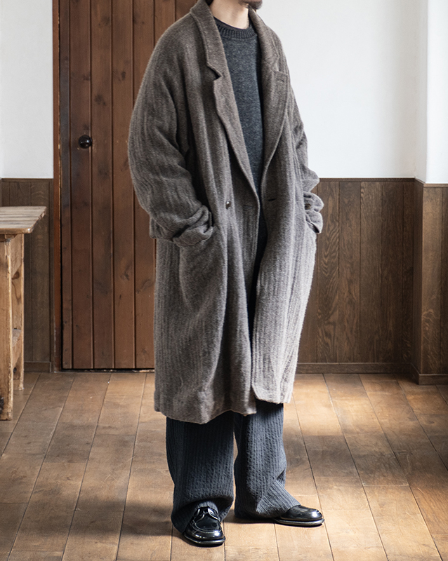 最後のビジュアルとして表現させて頂きました、ソフトツイードラグランコートです。