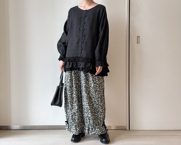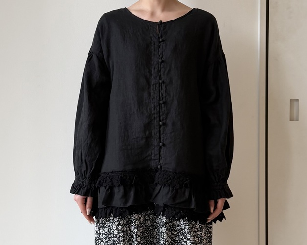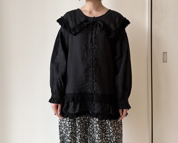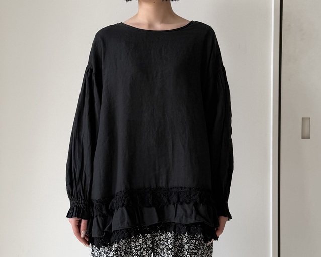 60リネンレースヘムブラウス (BLACK) ¥39,600(税込) / nest Robe