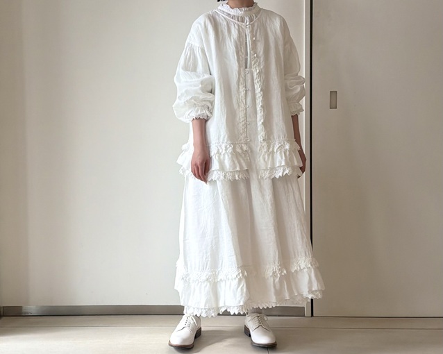 リネンギャザースカート (OFF WHITE) ¥24,200(税込) / nest Robe