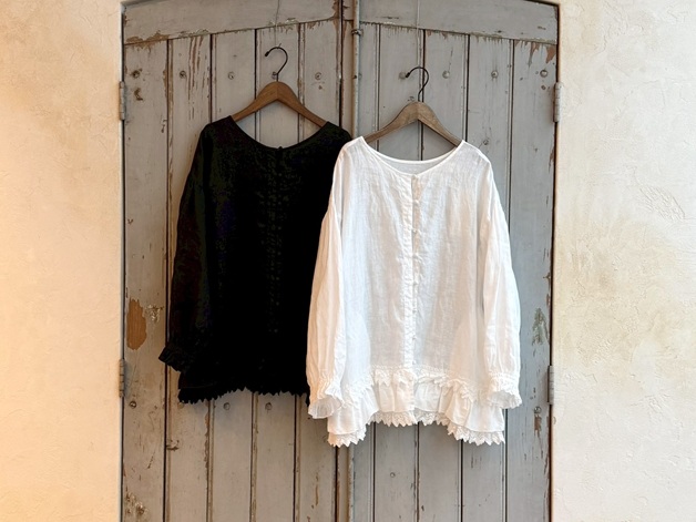 60リネンレースヘムブラウス (OFF WHITE / BLACK) ¥39,600(税込) / nest Robe