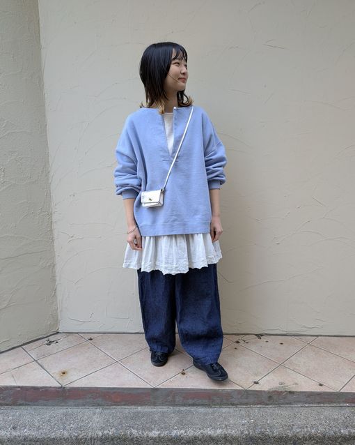 やわらかな雰囲気になります。ワイドデニムとの相性も◎