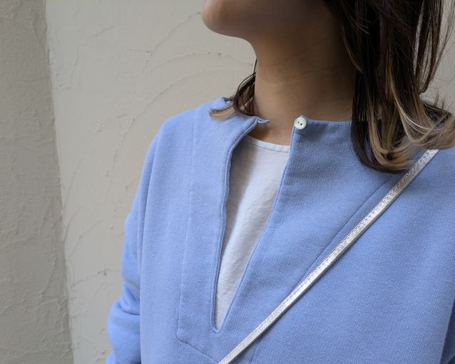 [UpcycleLino] 裏毛スキッパープルオーバー (L・BLUE) ¥22,000(税込) / nest Robe