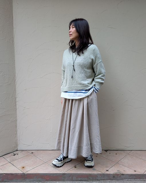 NATURAL色のスカートを合わせるとより一層、春らしい装いになります。