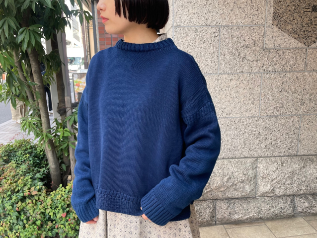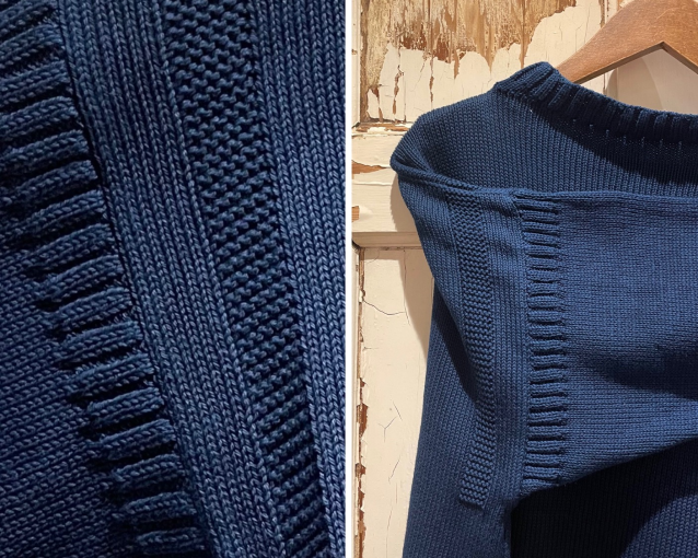 さらに同じく藍染めで、コットン素材のガンジーニットもご用意しております。