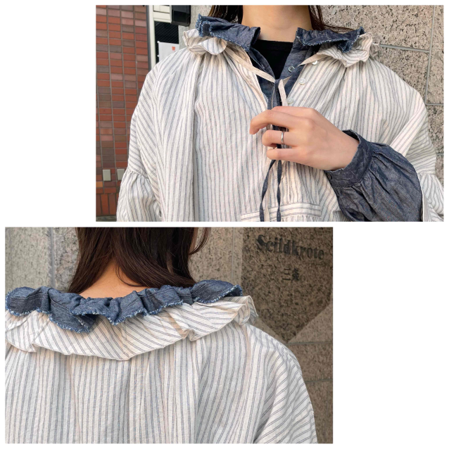 コットンリネンダンガリーフリルシャツ (INDIGO) ¥24,200(税込) / nest Robe