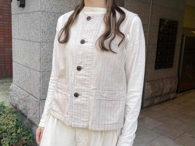 リネンならではのナチュラルな風合いを楽しめるベスト。