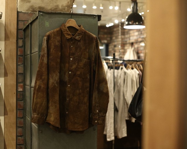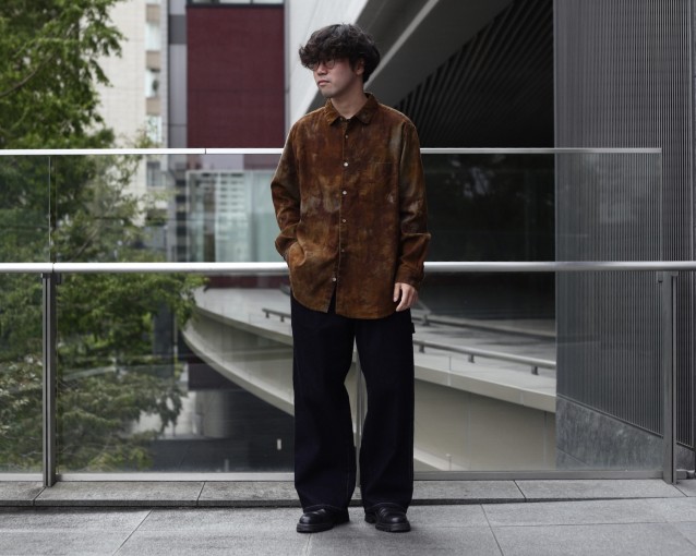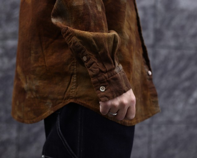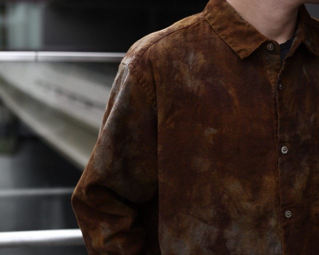 【UpcycleLino】起毛 ムラ染め レギュラーカラーシャツ (BROWN) ¥49,500(税込) / CONFECT