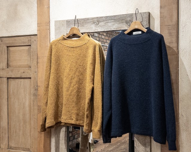 ウールクォーターゲージニット モックネックプルオーバー (MUSTARD / D・NAVY) ¥22,000(税込) / CONFECT