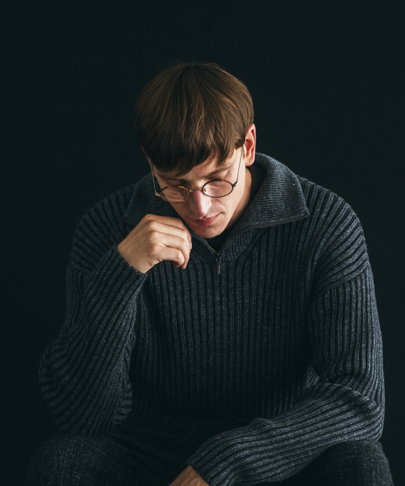 リネンウール リブニット ハーフジップ プルオーバー