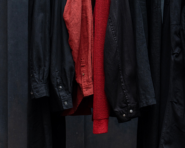 また、コレクション公開に合わせ、今シーズンのキーカラーの一つ、DARK RED(ダークレッド)にフォーカスした特集ページを公開しました。アースカラーの延長にある、彩度を抑えた深みのある赤。ブランドとして積み上げてきた、Ink Blackとの調和の中で、素材ごとに異なる質感と奥行きを表現しています。ニットやシャツ、セーリングパーカなど、日常に自然と馴染むプロダクトを通して、その色の佇まいをご覧ください。